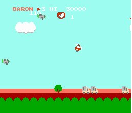 Plutôt que Choplifter, ce Glory Days 2 me fait maintenant penser à SkyKid, un vieux jeu d'arcade sorti sur l'impalpable console Yeno Super Cassette. SkyKid était un shoot à scrolling vertical où on contrôlait un avion au proportions cartoonesques. On disposait d'une bombe sous l'avion à larguer sur le boss.