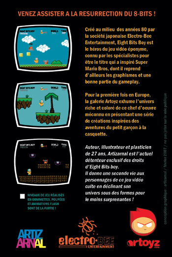 Envoyé au feu par Game A, voilà mon bref rapport en images de l'expo 8bits Boy qui se tient encore pour quelques jours, au magasin Artoyz.