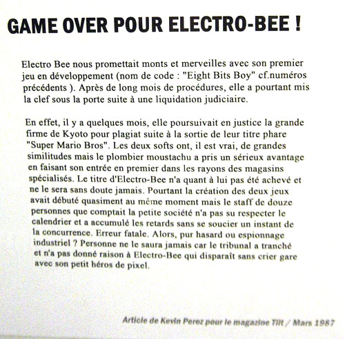 Le concept est d'y faire croire un peu, avec un faux article et tout. Et entre l'intro du jeu en flash empruntant tant à Super Mario qu'à Ghouls'n'Ghost, le joli travail des sprites en carton, la fausse boite du jeu, et les mignonnes peluches, l'installation produit son petit effet.