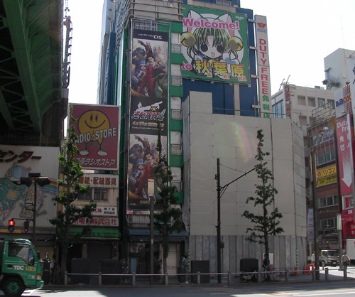 Car à Akihabara on ne cherche pas le bonheur dans de sombres boutiques puant la sueur, il nous agresse avec des panneaux énormes faits de personnages colorés étalés sur des immeubles remplis de merveilles. Des figurines plus que les yeux ne peuvent en enregistrer, et des magasins de jeux vidéo cultivés, esthétiques, avec des vendeuses souriantes. On oublie vite la France, ses glaireux introvertis, et ses vendeurs moribonds. Ici il y en a pour tous les goûts, de toutes les tailles, à tous les prix, sans la moindre honte.