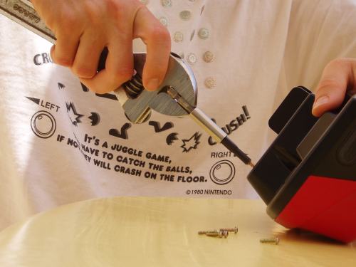 Pour jouer au Dr. Mario, il ne reste qu’à ouvrir le truc, forcément fermé avec des vis spéciales. Petit passage chez l’ami hong-kongais pour trouver l’embout adapté (4.5mm), cinquante francs tout de même. Ellipse narrative, comme dans les meilleures émissions de cuisine, ça y est je l’ai reçu.