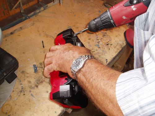 Les vis sont trop profondes ? Ah ouais ? ah ouais ? Passage éclair chez mes grands-parents et hop, le bébé passe dans les mains et la chambre de torture de mon grand-père.