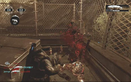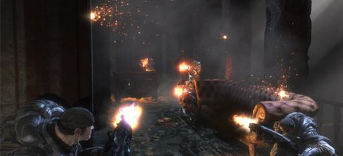 L'autre caractéristique de GoW (après le TPS et le gore), c'est la planque et la course à couvert. En situation de duel ou d'attaque/défense de zone, la différence se fera souvent sur l'utilisation du terrain pour se protéger des tirs.
