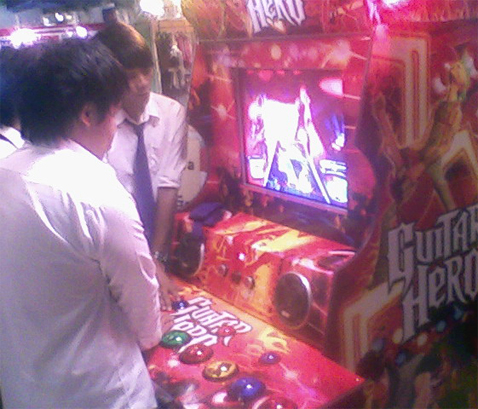 Une borne Guitar Hero sans guitare. Z’ont rien compris…