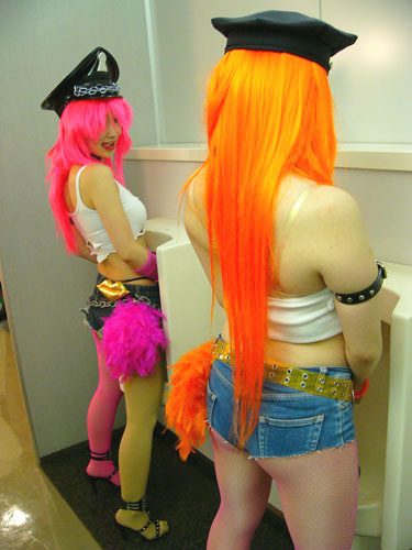 je crois pas que ce soit des dames.... car les dames pisse pas debout le deux mains devant... Donc libre à toi de te faire casser la gueuelle, mais mon conseil attention à tes fesses :)