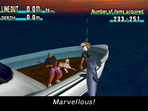 Je ne sais pas pourquoi, mais je sens déjà que ce jeu m'ennuierait rapidement : à part ces requins, on pêche quoi dans ce jeu ? C'est beau, les exploits, mais sortir des bestioles de plus de 100 kilos à raison de 10 par jour, on doit finir blasé au bout de quelques parties, non ? Par contre, maintenant, à cause des conneries de Game A, ça y est, j'ai envie d'écrire un roman qui commence à 8 heures du soir, tiens !