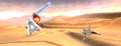 Un autre truc de bien dans AfterBurner, c’est le coté OutRun des décors. Tous typés, désert, forêts germaniques, atolls asiatiques etc, et tous kré kré bo. Et j’y arrive : régulièrement on pourra balancer des ogives sur de grand monuments.