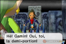 Et puis il me pose un problème ce Link : cet épisode suit à peu près immédiatement le jeu précédent, ce qui revient à dire que Link, au début de Phantom Hourglass, est déjà un héros, ce que le scénario du jeu ne prend à aucun moment en compte. Retrouvé sur une plage, Link redevient mystérieusement un bleu sans compétence, sans endurance et sans crédibilité : il passe la première partie du jeu à être rabaissé par les autres personnages.