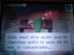 Wind Waker m'avait déjà saoulé et déçu. Pour moi, les références restent OOT, pour l'idée simple et géniale de grandir, et Majora's Mask, pour la multitude de quêtes accessoires. TP était pas mal, mais je trouve bizarre l'idée de pouvoir se transformer en loup; il y a une incohérence au niveau de la symbolique. Link c'est pas le tigre des infâmes céréales "frosties" ("sors le tigre qui est en toi, truc du genre").