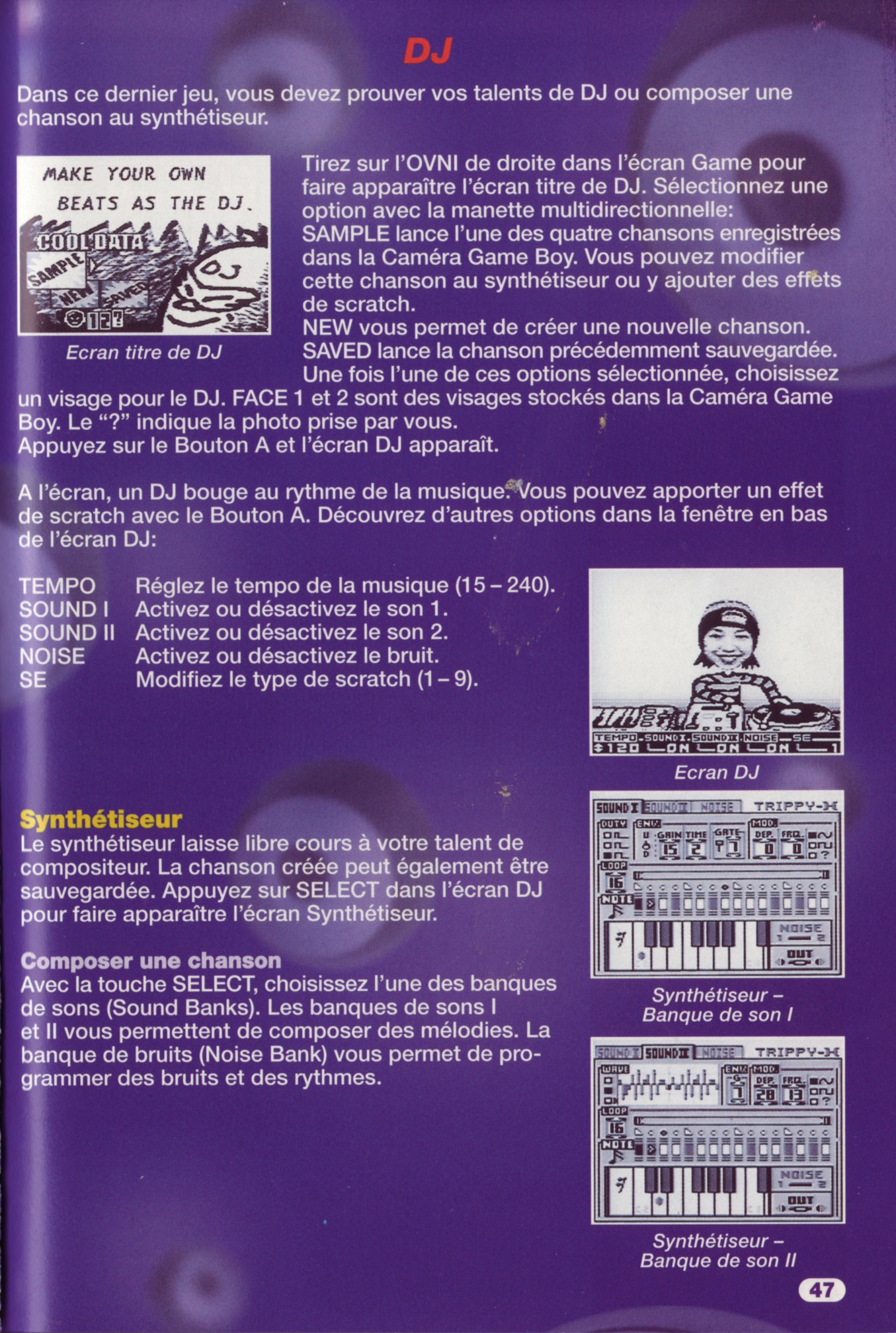 SAMPLE lance une des quatre chansons enregistrées dans la Caméra Game Boy [sic]. Vous pouvez modifier cette chanson au synthétiseur ou y ajouter des effets de scratch.