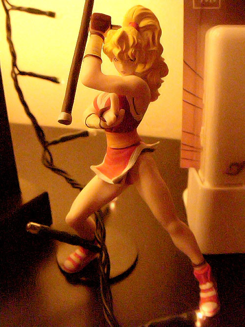 L'écolière, c'est Lilith de Darkstalkers. Elle a son sailor-fuku qui part en ailes de chauve-souris.