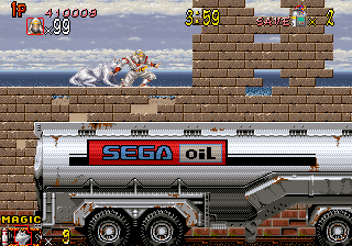 Mais va interdire à des gosses qui rêvaient devant les NES et Master System d'aller regarder des jeux d'arcade, tellement plus impressionnants à l'époque. On fantasmait déjà sur les versions Atari et Amiga de jeux comme Power Drift, mais l'arcade, c'était autre chose encore... Alors on a bravé les interdits, et tous les soirs on s'arrètait à la salle, de plus en plus longtemps. Et on a commencé à y mettre tout notre argent de poche. Ça a commencé avec Shinobi, Out Run, puis Golden Axe, et un jour est arrivé Final Fight c'était le graal, on avait déjà vu Double Dragon mais là ça dépassait tout ce qu'on connaissait. Les sprites étaient énormes, l'ambiance sonore fabuleuse, les graphismes superbes pour l'époque. On a claqué une belle collection de pièces de 10F dedans, jusqu'à le finir. Idem pour Snow Bros (celui-là, avec les petits sons stridents caractéristiques quand on tire, il nous a marqués à vie) puis Shadow Dancer (déjà cité), Rolling Thunder...