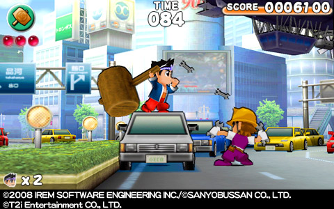 - Hammerin' Harry, qui est un vieux jeu PC Engine auquel je n'ai jamais joué mais qui avait bonne réput' à l'époque, sort en 3D sur PSP. Un dessin animé sort en même temps... Faut arrêter avec les récups' dans le genre Castlevania X ou Megaman pour la portable de Sony, ça marche pas. On perd le charme de l'original et c'est pas le gameplay passé à la moulinette polygonale qui justifie le jeu.