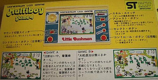 Little Bushman est un des cinq Multiboy Game 4 sortis en 1982 par Yonezawa (j’ai un peu parlé de Surfer Boy dans la même collection).