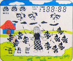 En plus des fonctions radio, podomètre, métronome etc. à construire soi-même, il faut dans la partie “jeu” défendre une jeune fille de méchants petits démons qui la déshabillent à chaque erreur. Au bout de trois, la jeune fille est nue.