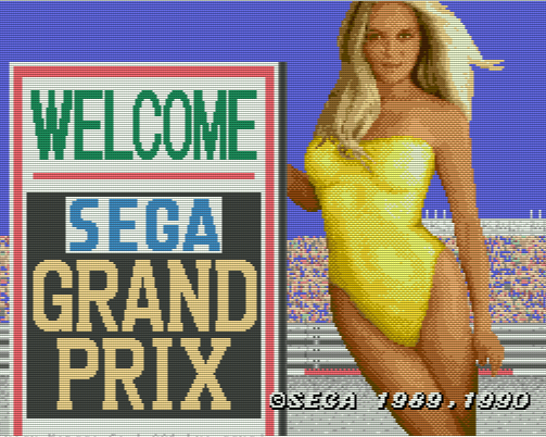 Mais ma préférée, c’était la blonde qui vous accueillait dans Super Monaco GP de Sega (1989 en arcade, 1990 sur Megadrive).