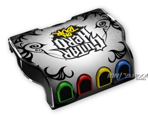 Voilà comment nous allons jouer à Guitar Hero sur DS cet été : en niveau medium. Au revoir bouton ouranje, au revoir les glissades le long du manche. Le jeu sera accompagné de cet appendice à quatre frettes et d'un stylus-médiator indispensables pour jouer au jeu. Une très bonne technique anti-piratage soit dit en passant. Notons également qu'il faudra crier dans le mike pour déclencher le Star Pouvoir.