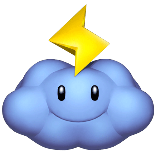 Le nuage est une première en ce sens qu’il est plus reçu par le joueur comme une mauvaise surprise que comme un moyen de rattraper son retard. Il se déclenche immédiatement à la fin de la roulette des arme, et après une quinzaine de seconde un éclair rapetissant s’abat sur le porteur du marionimbus; l’entrainant autant dans le bas du classement que dans les affres de la solitude (l’éclair classique étant effectif sur tous les concurrents).