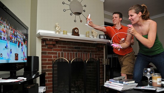 Autre exemple : la boxe dans Wii Sports créait ainsi une situation grotesque où deux joueurs côte à côte se faisaient face par l’entremise de l’écran.Source de l’image.
