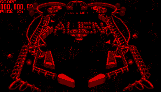 J'aimais déjà beaucoup ce Galactic Pinball sur émulateur. D'abord parce que c'est un jeu triste. Est-ce la musique ? l'absence totale de présence humaine ? l'idée d'un flipper géant dans l'espace ? J'aurais du mal à l'expliquer mais c'est indéniable. Ensuite à cause du dégradé de rouge et de la relative simplicité de ses graphismes : comme si on regardait un mini-jeu sur l'écran de diodes d'un vrai flipper.