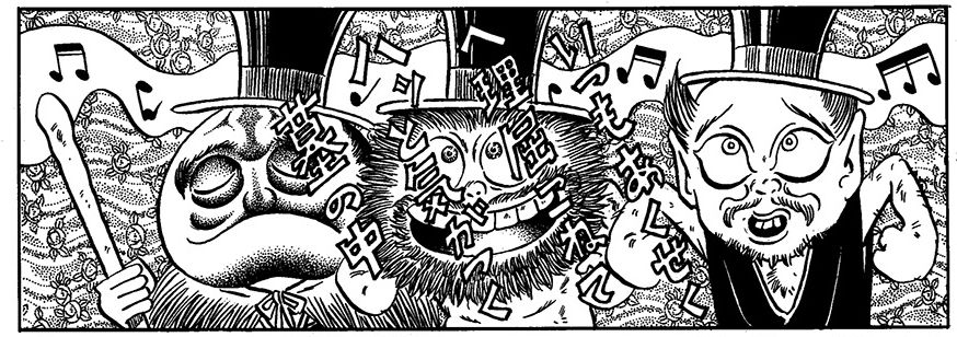 Il nous en manque quand même un petit nombre, signe qu’une autre source a été employée pour compléter cette parade, d’autant plus que le mangaka ne semble jamais avoir dessiné lui-même de japandemonium**.