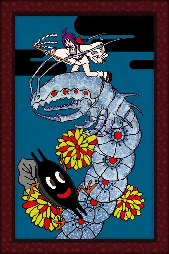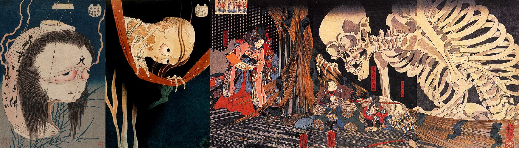 D’autres estampes ont par ailleurs été employées pour les étapes d’animation de la même Akari, que ce soit Oiwa san d’Hokusai ou le coup invoquant Dorotabō (via Mizuki qui reprend l’apparence fixée par Toriyama Sekien) mais qui, par sa taille et sa manière d’apparaître sur les bords de l’écran, rappelle aussi le fantôme de Kohada Koheiji d’Hokusai ou le célèbre squelette fantôme d’Utagawa Kuniyoshi (rebaptisé Gashadokuro, « crâne clac-clac » chez Mizuki).