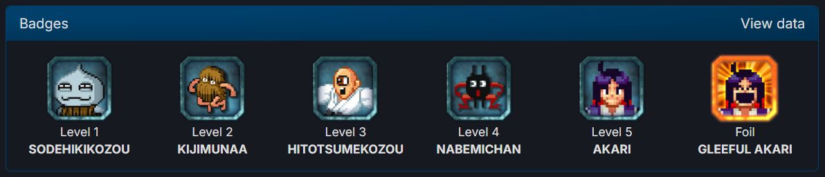 Mais revenons aux badges Steam, dont le premier niveau, « Sodehiki kozō », s’avère nommé d’après ce yōkai inoffensif qui, disait-on, tirait les pans de votre kimono.