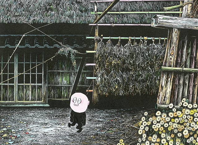 Compte-tenu de l’intense taux de recyclage de tout ce qu’il a produit dans le domaine, il serait cependant très improbable qu’on ne le retrouve ni dans une édition récente de son travail ni dans les bas-fonds de google image. Son travail dans le domaine semble à propos avoir été très circonscrit dans le temps, l’essentiel remontant aux années 70 (Brigitte Kodama-Richard, dans Yôkai: fantastique art japonais, indique une publication dans le Shônen en 1968 pour plusieurs illustrations bien connues).