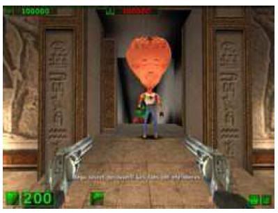Dans le premier Serious Sam, une salle secrète dans le tout premier niveau permettait de voir apparaitre une horde de bonhomme à grosse tête, représentant les développeurs ainsi qu’une autre, plus loin, représentant des fans du jeu ^^ La même chose dans Second Encounter, au premier niveau, où l’on assistait à un mini-concert débile…