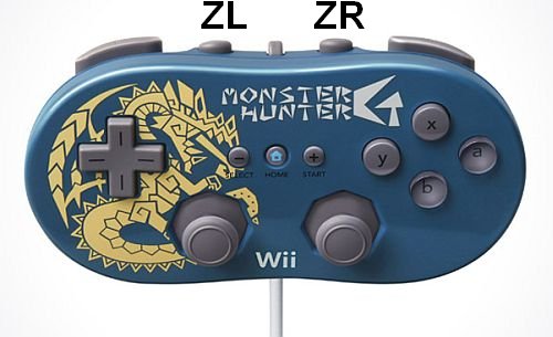 Si vous ne l’avez jamais manipulée, disons que la croix est aussi désagréable que celle de la DSi (trop lisse), que deux boutons (ZL et ZR) sont simplement inaccessibles sans changer sa prise et que l’emplacement des boutons - et + (select et start) n’est pas plus pratique que sur la wiimote. Il fallait pourtant faire avec : la manette classique était obligatoire pour jouer à Monster Hunter G, ni la wiimote ni la manette GameCube n’étant compatibles.