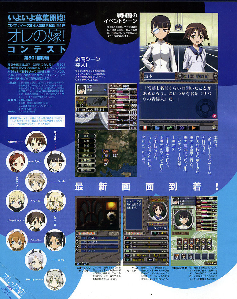 Ce qui donnera un jeu de stratégie fanservice, basé sur des relations entre coéquipières à la Sakura Wars. Rien de notable, si ce n’est la pochette collector pour ranger la DS qui sera offerte pour les précommandes.