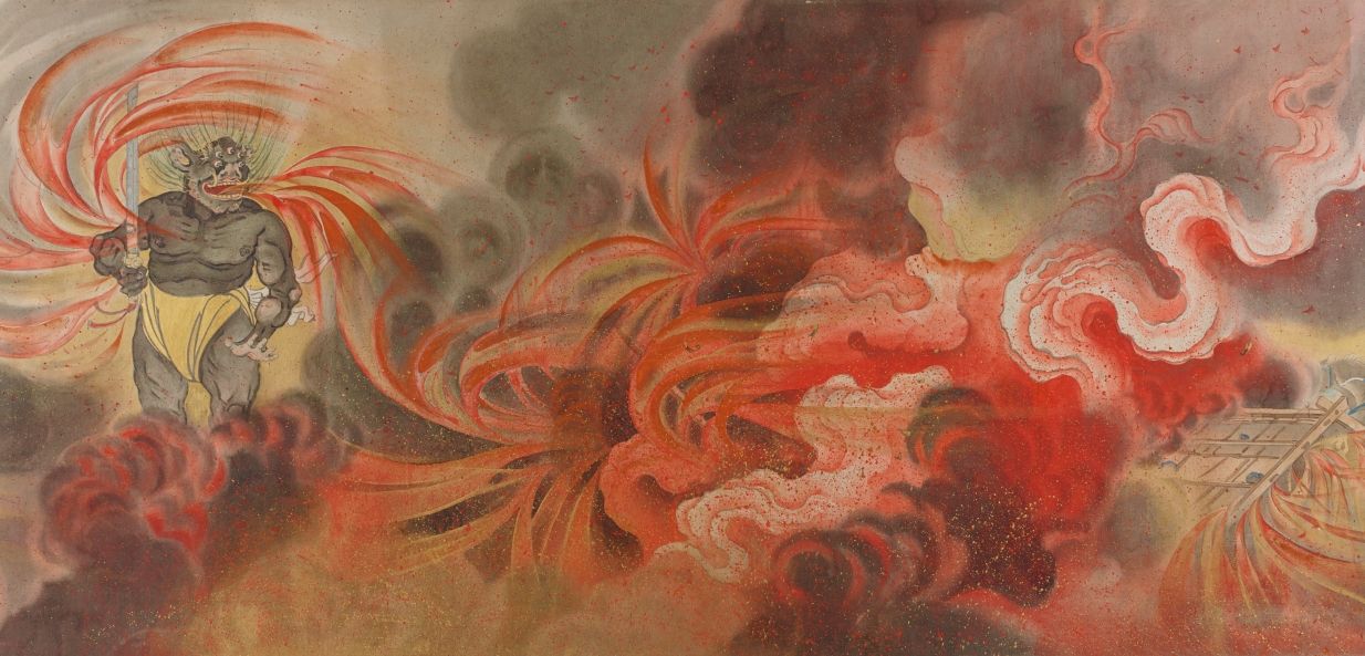 Le mouvement s’est tout d’abord peu préoccupé de représenter des yōkai, à l’exception notable d’un emaki de Shimomura Kanzan, 1900 :