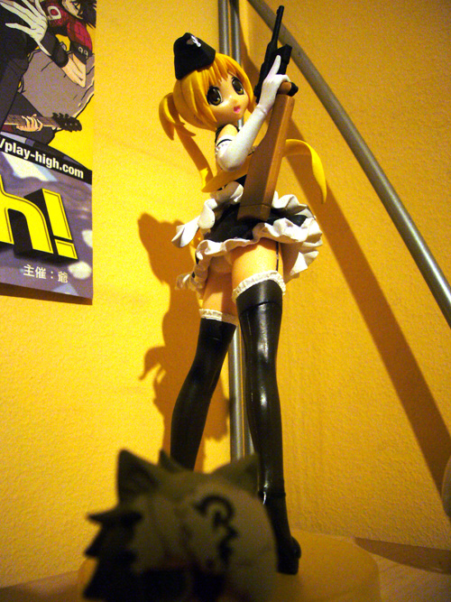 Les deux donzelles, qui se sont chargées d’achever les souffrances du mal-moulé, sont issues de la série “He’s My Master” produite par Gainax (Evangelion, FLCL, Gurren Lagann). Ce sont des prix de machines à pince normalement non-disponible dans le commerce. Mais tout se monnaie à Akihabara…