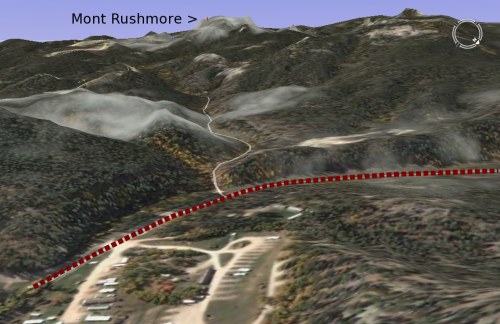 Le pire : il n’y a aucune voie ferrée qui permette d’admirer les hiératiques visages des présidents ! Le relief bouche la vue depuis la seule ligne (touristique) partant de Keystone la ville la plus proche ; qui, de toute façon, passe derrière la colline et les visages face au sud.