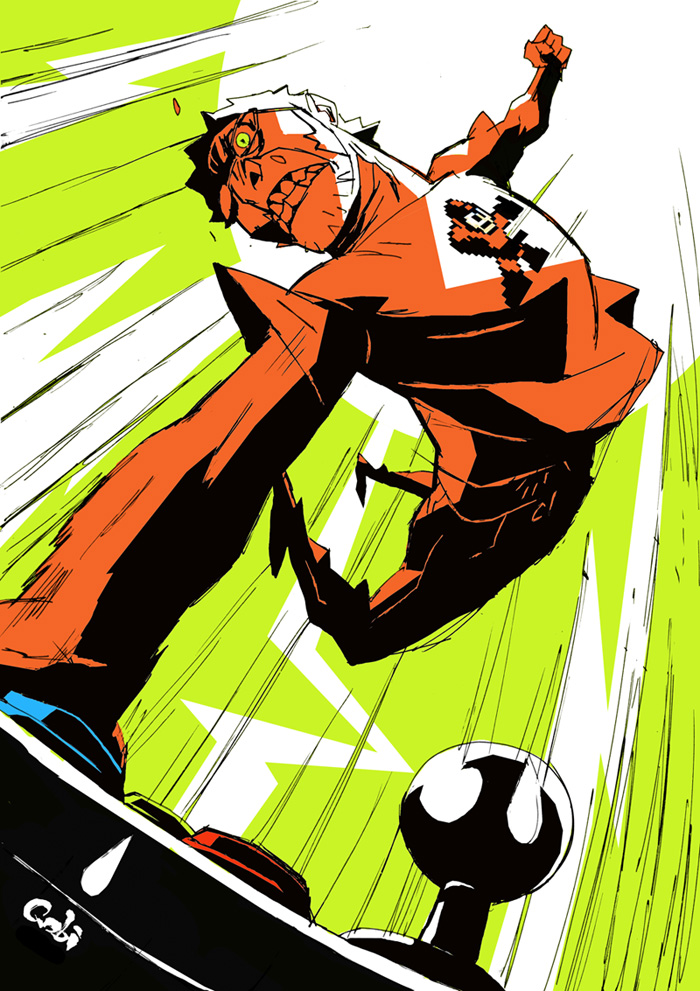 L'illustration me rappelle qu'en salle d'arcade, quand il y en avait encore dans ma ville, parfois des types fous furieux tapaient sur les boutons et le stick, voir sur l'écran. Certains renversaient leur tabouret en hurlant... Aaaah, c'était bien drôle, surtout quand mes amis ou moi-même étions à l'origine de cette rage :D