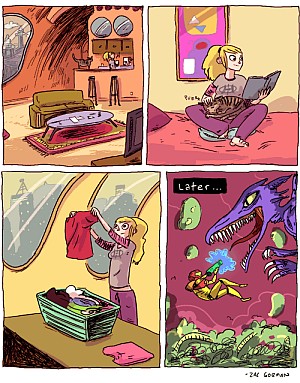 @jarreboum : merci pour le lien. Je le conseille à tout le monde, il s’avère beaucoup plus complet que ce que j’ai essayé de dire (mais que les commentaires ont largement complété). Il analyse notamment la relation Adam/Samus de plus près - comme l’article de Casual Hardcore Gaming d’ailleurs, qui développait la notion d’une Samus “dysfonctionnellement indépendante”.