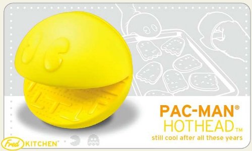 Partie de la collection 2009 de la marque Fred&friends, cette manique complète leur gamme « Hotheads ». Si la plupart des produits Fred sont commercialisés en France, ce n’est malheureusement pas le cas du modèle Pac-Man, pour l’instant réservé au marché américain. Un petit tour sur Ibé remédiera à cette injustice.