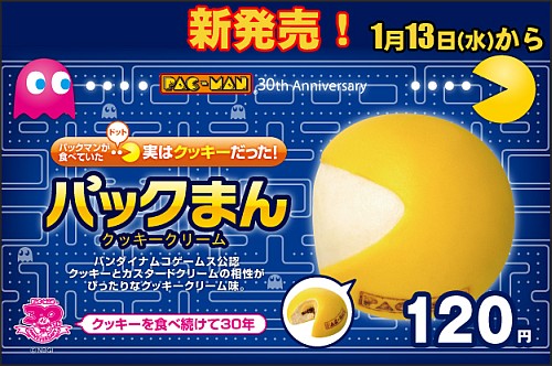 Baozi Pac-Man, 183 calories et 120 yens jusqu’à épuisement des stocks dans les 6000 et quelque magasins de la chaîne (source : Narinari et Dengeki).