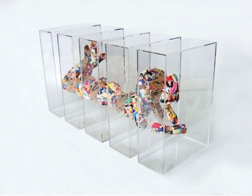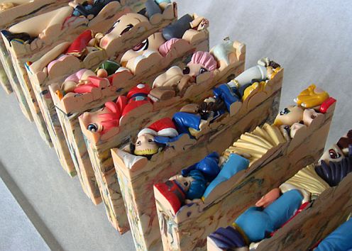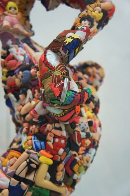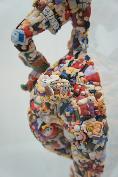 Ces moulages et découpages sont l’oeuvre d’un collectif d’artistes japonais connu sous le nom de Three (3). Je n’ai pas encore reconnu de mes figurines dans ces agglomérations contre-nature. Mais je pourrais les chercher durant des heures dans ces fessesfaitesavecdesnichons.