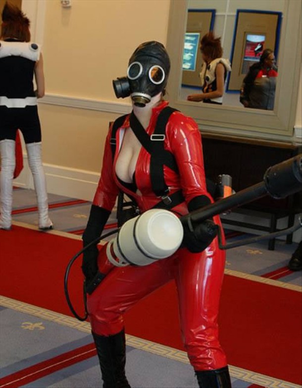 Tiens, un meuf en Pyro d’après le jeu Team Fortress 2. Ce serait marrant qu’elle s’appelle Lise. …