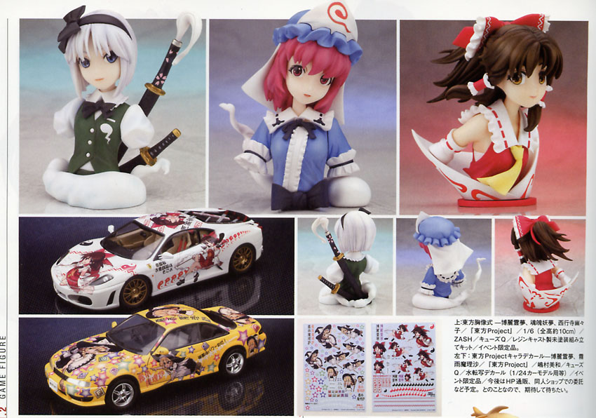 Les bustes des héroines de Touhou, un dojin-game (jeu amateur) qui fait long feu, sont très réussies dans leur rendu des couleurs pastelles et mates. La mise en scène des supports par des volutes ou des cartes marche aussi très bien.