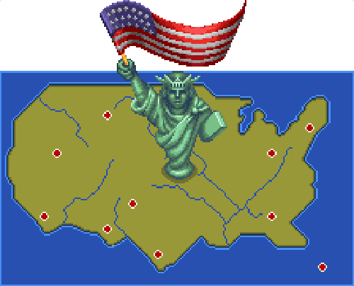 7. Cette carte des États-Unis (d’un jeu de combat sur Super Nintendo) n’est pas trop mal, c’est juste qu’elle place la statue de la liberté au milieu. Oui c’est fait exprès, je sais, mais ça m’amuse.